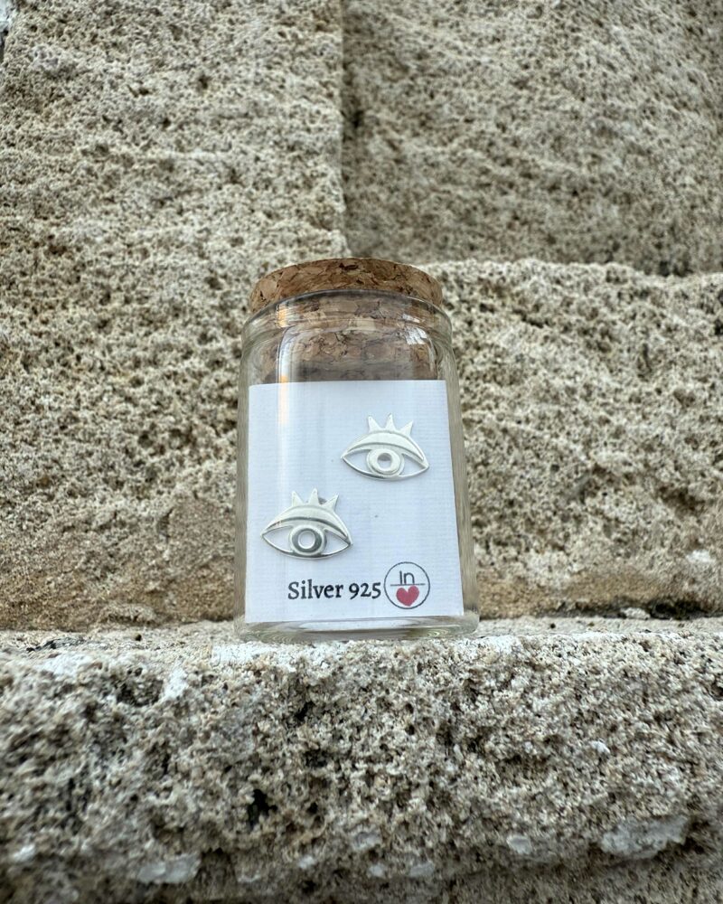 Lindos Earrings – “Crowned Evil Eye” Silver 925