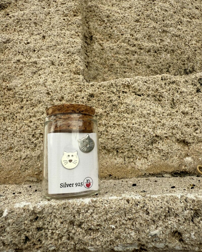 Lindos Cat Earrings – “Round Face Cat” Silver 925