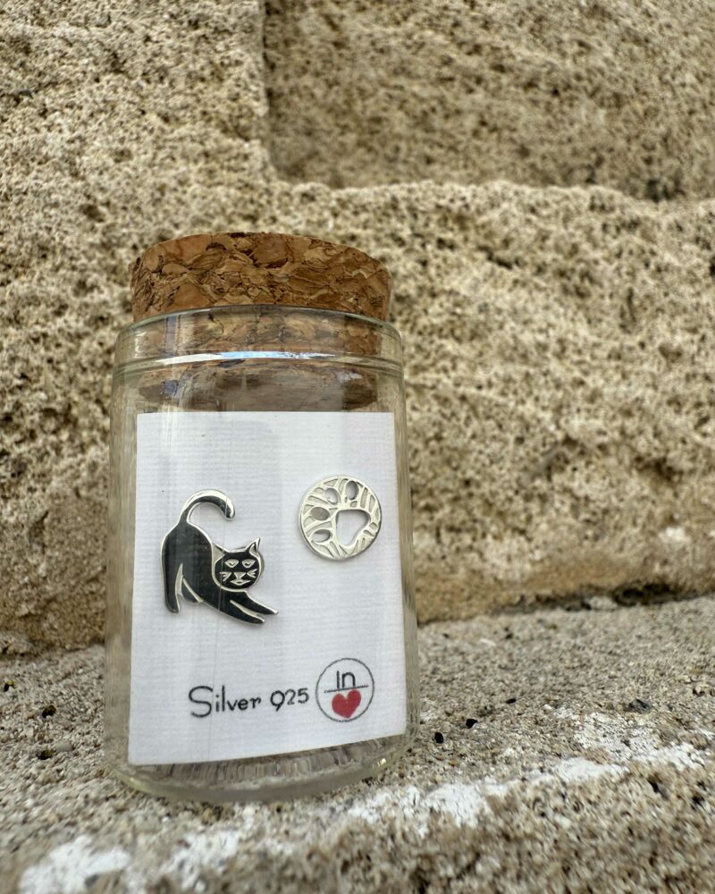 Lindos Cat Earring “Cat and Paw” Silver 925