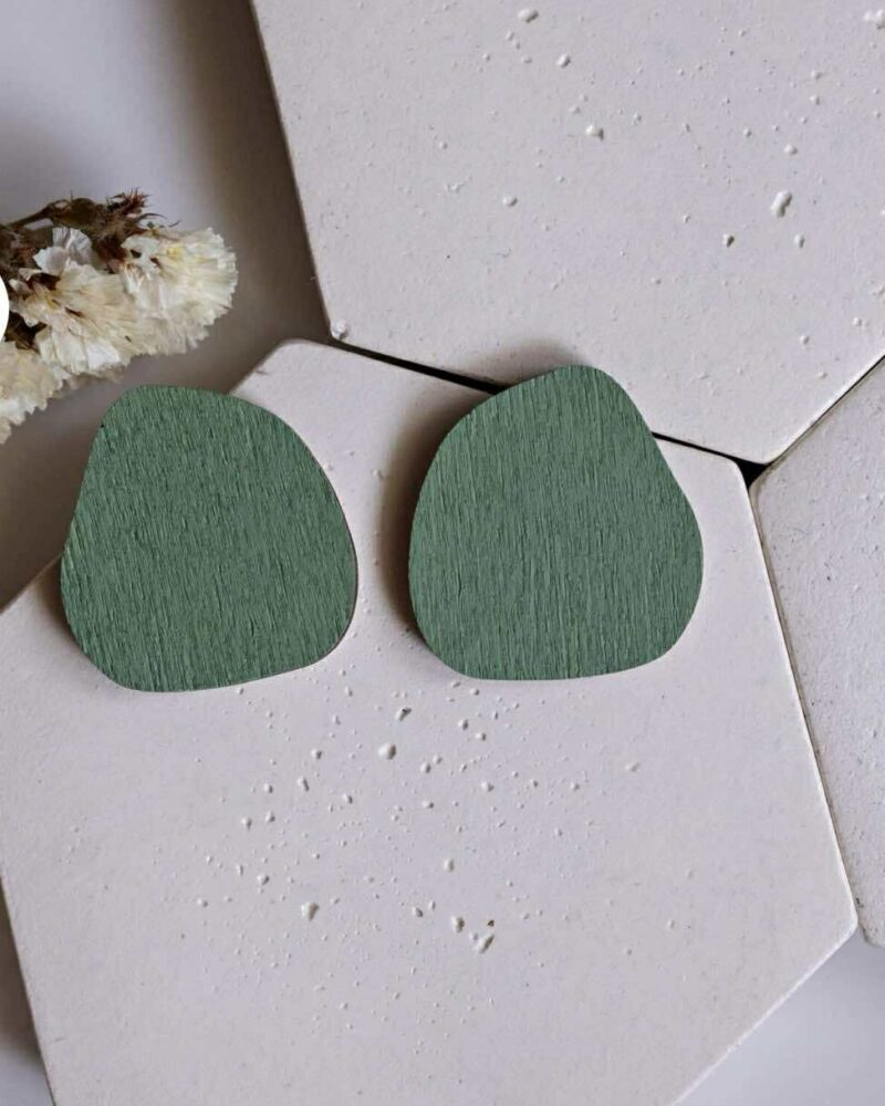 Aztec “Coral – Sky” – Wooden Stud Earrings