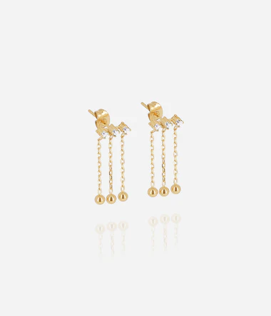 Earrings in plain or gold-plated steel. Set with zirconium, they are L-shaped, passing behind the lobe and ending with a drop-shaped natural stone.