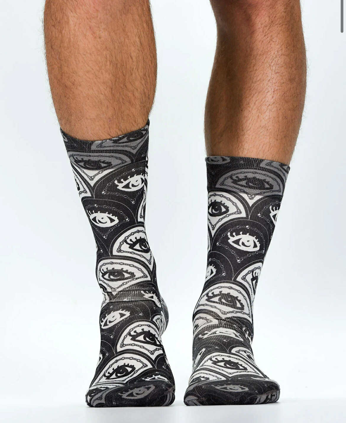 Step out in confidence with our Black & White Evil Eyes Design Socks. Featuring a crisp monochrome pattern of traditional protective eye motifs, these socks blend modern style with timeless symbolism. Made from a soft, breathable cotton blend, they’re perfect for everyday wear with a bold, meaningful twist.