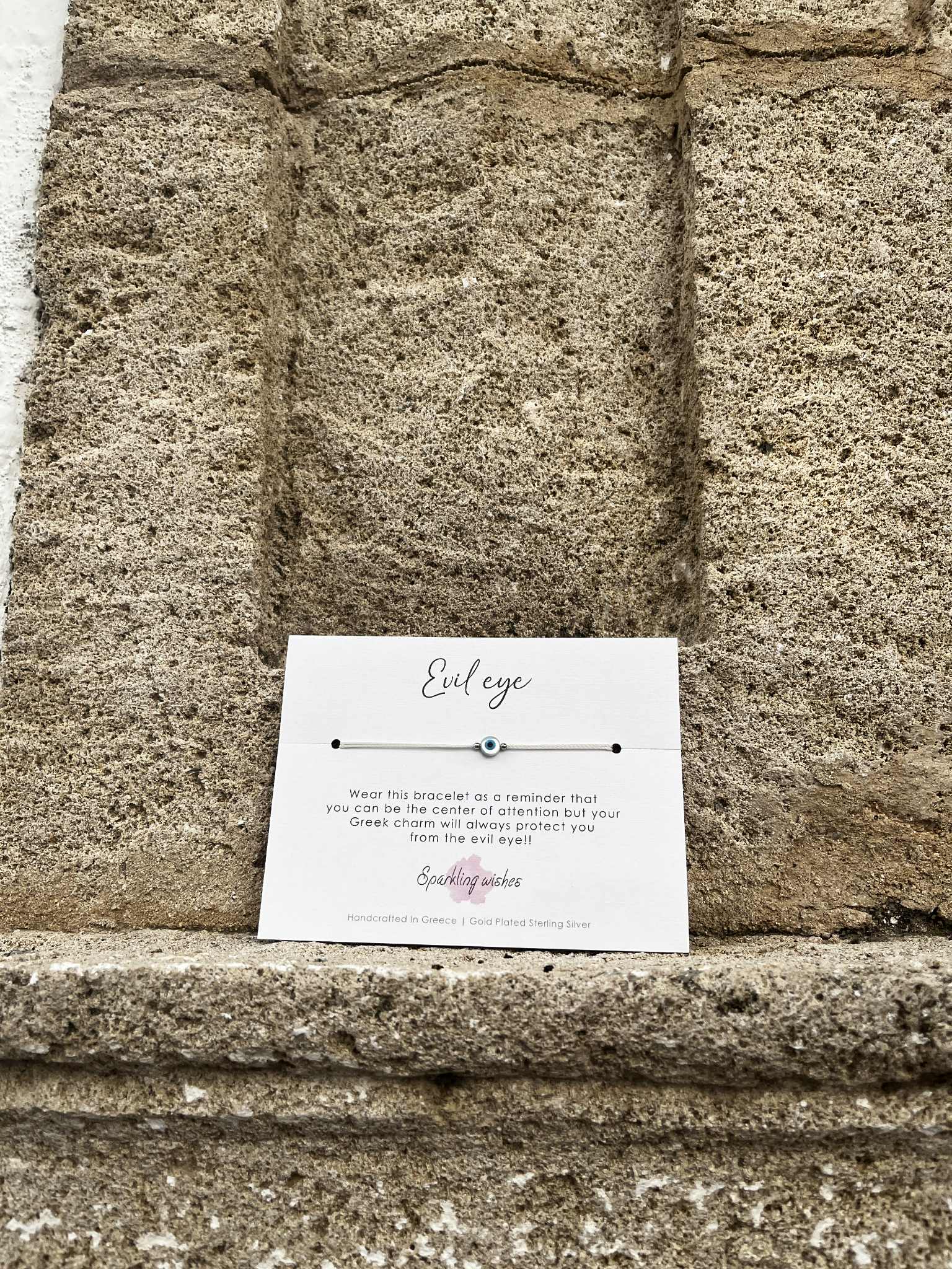 Carry a touch of Greek tradition and timeless symbolism with this handcrafted Evil Eye bracelet. Designed to be both meaningful and minimal, it features a delicate charm believed to protect its wearer from negativity and bring balance, confidence, and good energy throughout the day.