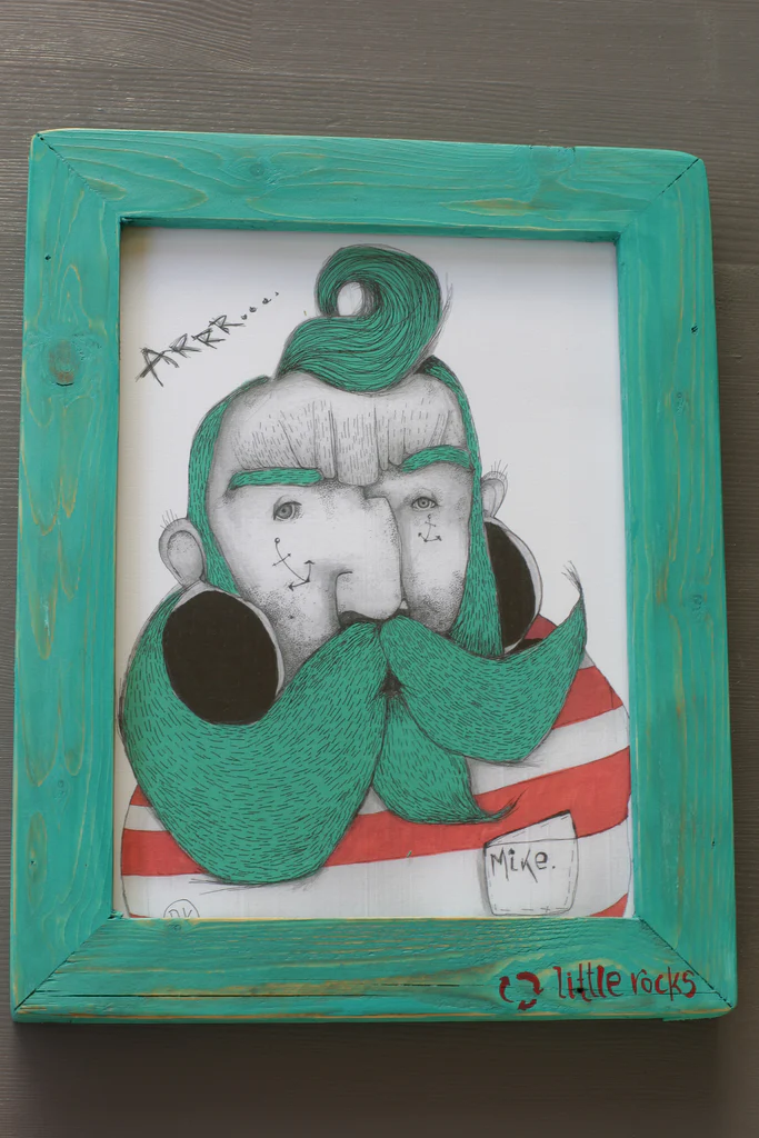 Greeks illustration comes with wooden upcycled frame and plexi glass