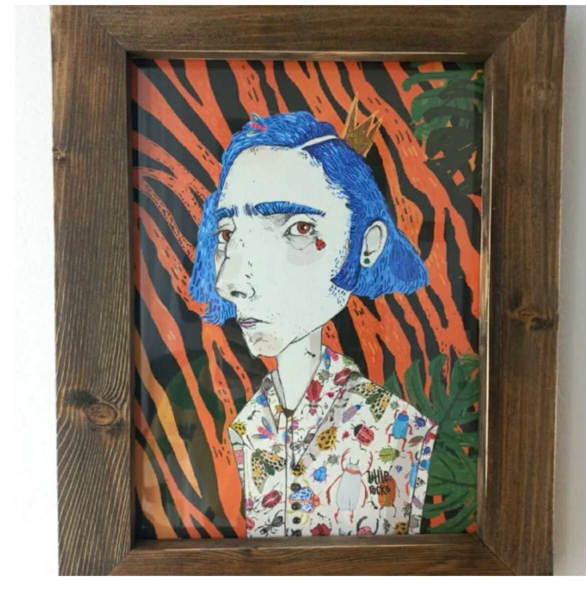 King illustration comes with wooden upcycled frame and plexi glass
