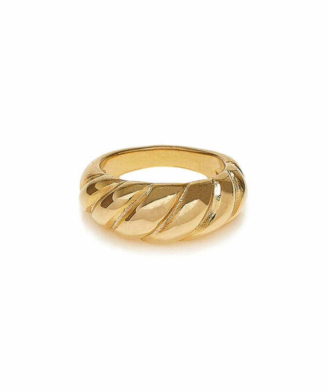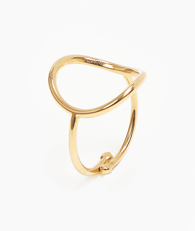 It is made of gold-plated steel and can be adjusted to fit your finger.