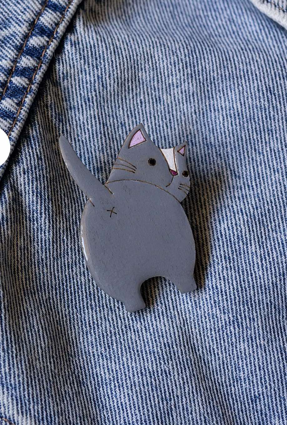 Grey Cat – Wooden Pin
