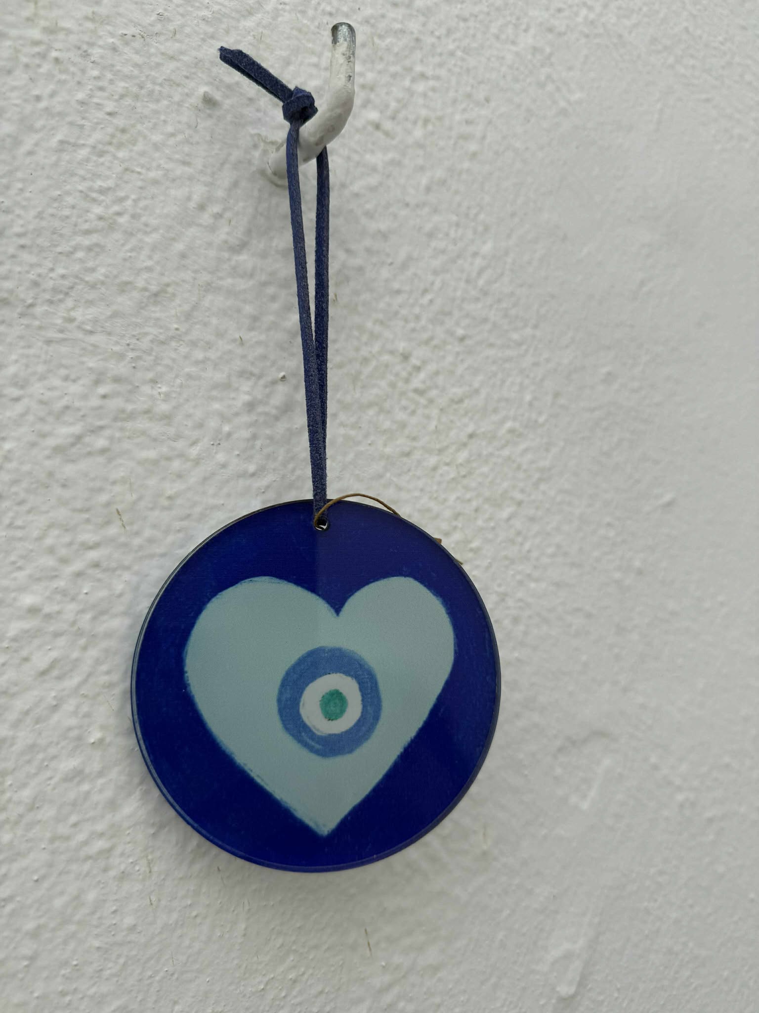 Bring a touch of Greek charm and protection into your space with this handmade Heart Evil Eye Charm.