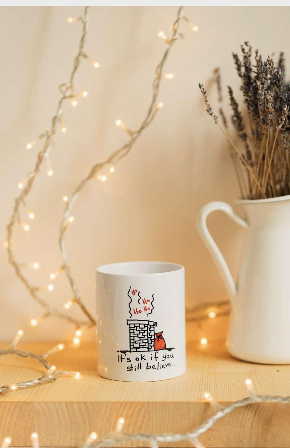 Bring a little wonder back to the season with this charming holiday mug, featuring a cozy chimney illustration and the sweet, nostalgic tagline “It’s OK If You Still Believe.”
