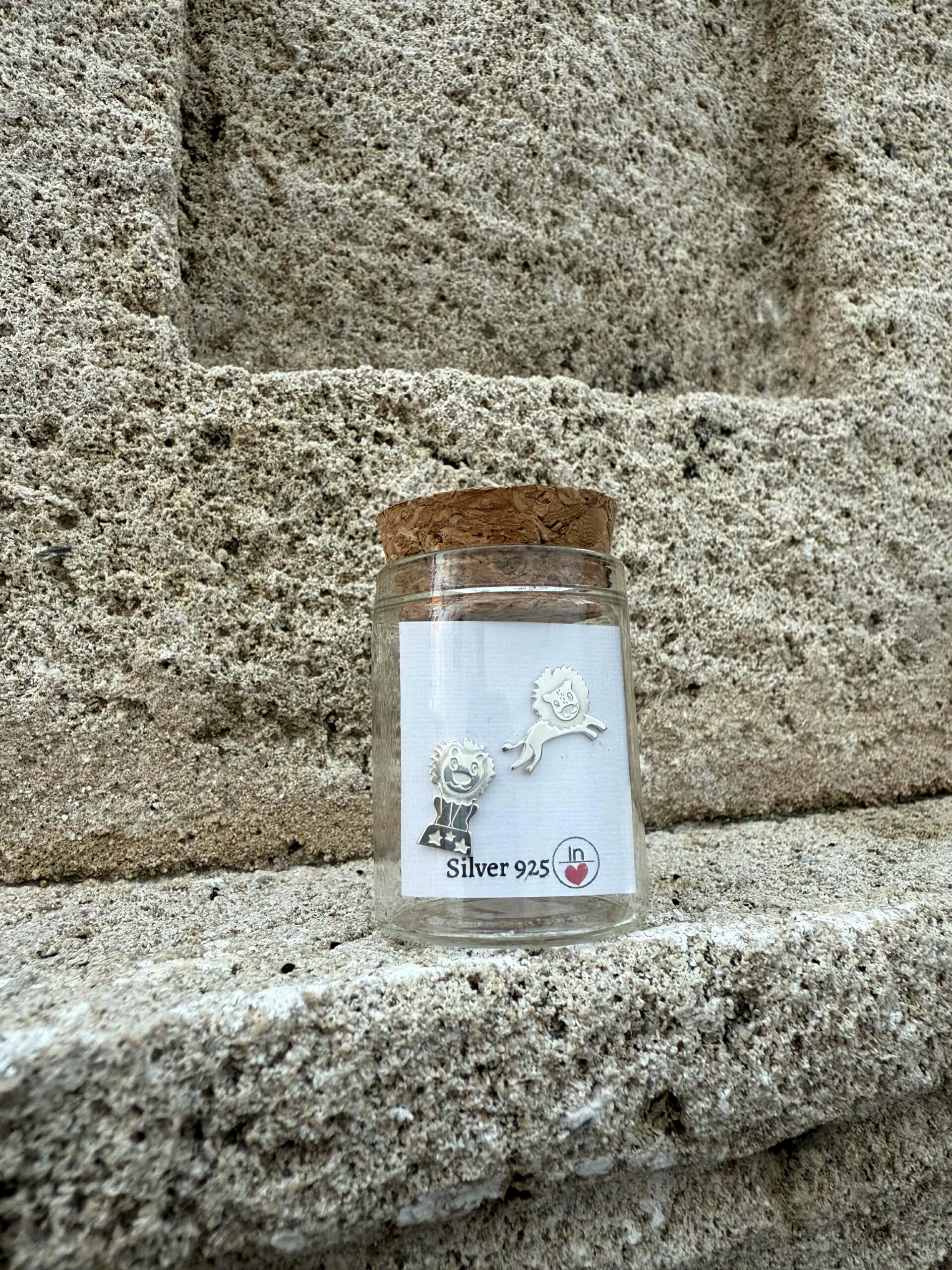 Handmade in Greece by a Greek designer, these playful silver earrings feature two expressive lions — one proud and poised, the other mid-leap, full of energy and spirit. Crafted from Sterling Silver 925, they capture the warmth and courage that live in the heart of Lindos, where strength always meets a smile.