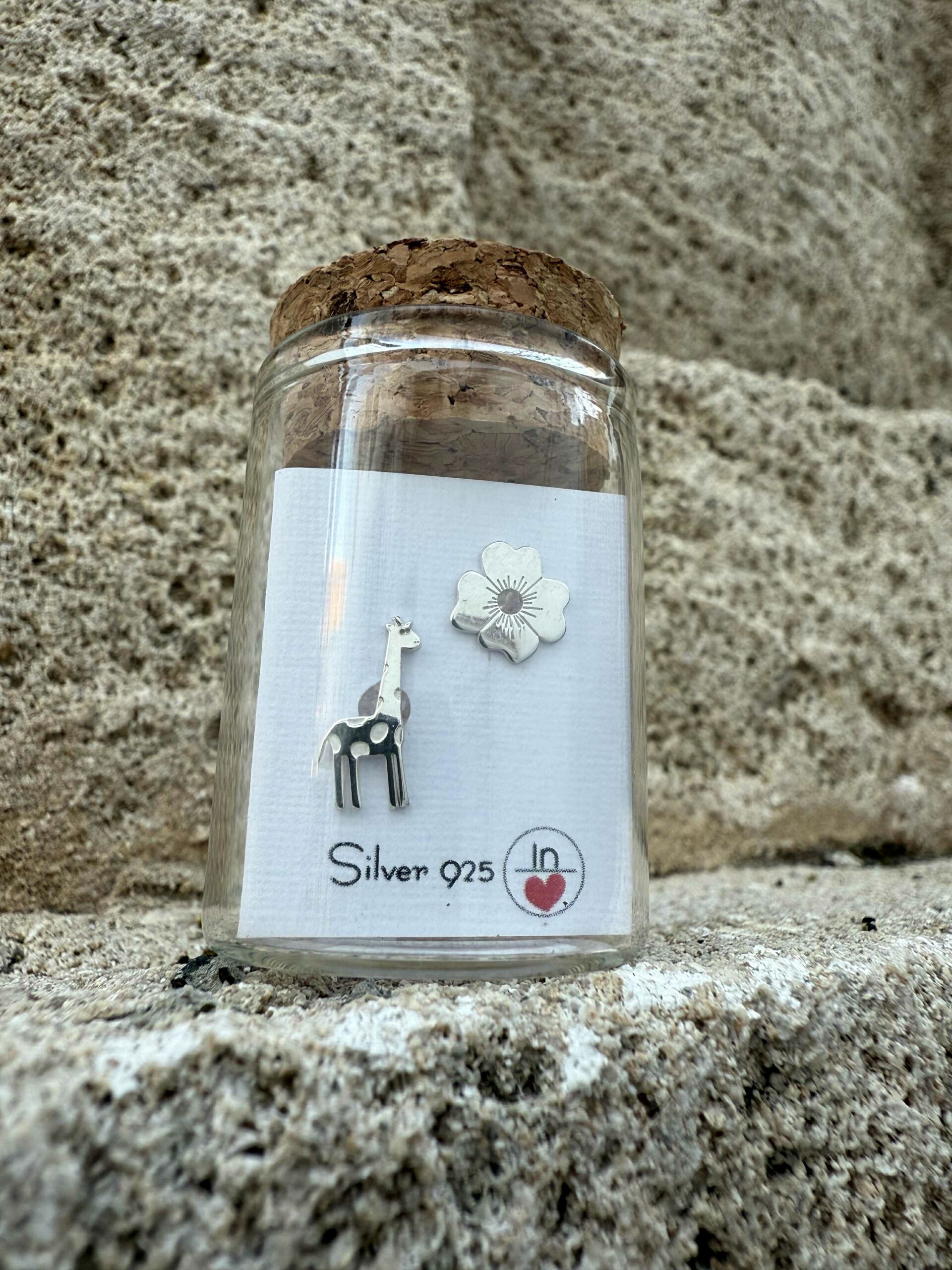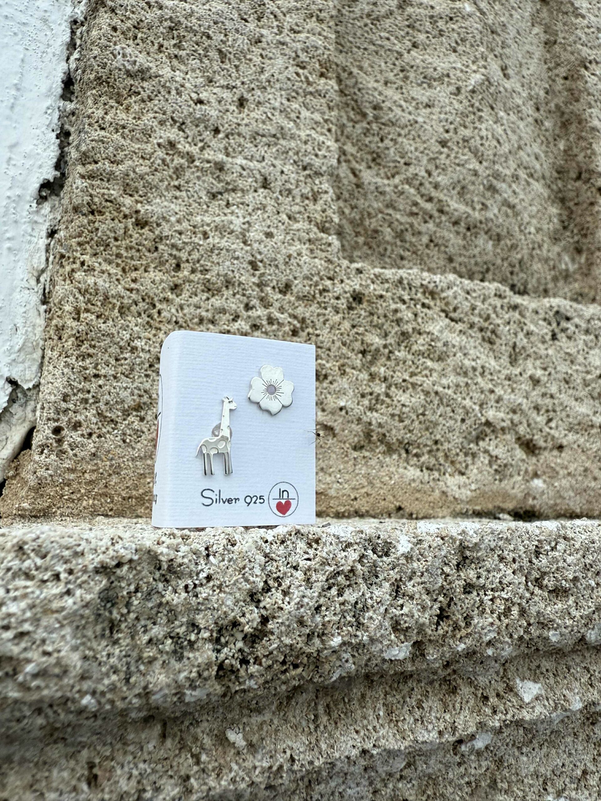 These charming silver earrings pair a delicate flower with a graceful giraffe — a playful mix of nature, curiosity, and quiet beauty. Crafted from Sterling Silver 925, they capture that lighthearted spirit of Lindos, where every corner blooms with color and every day invites you to look up and smile.