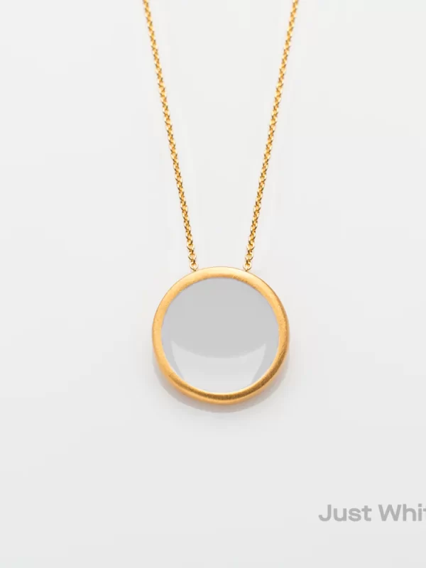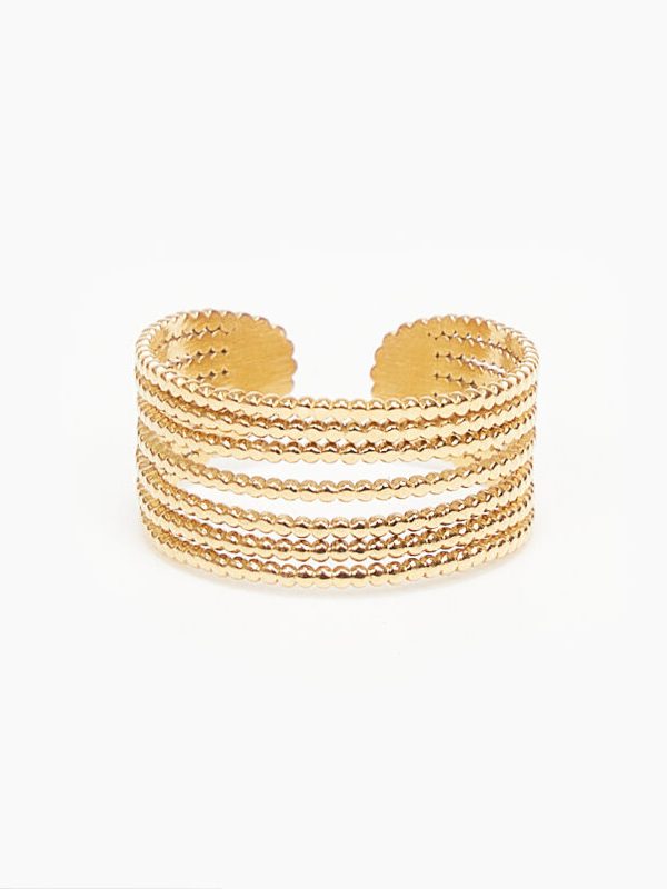 This piece of jewelry is made of brass featuring a 24K gold plating. The inside surface is coated with coloring resin.