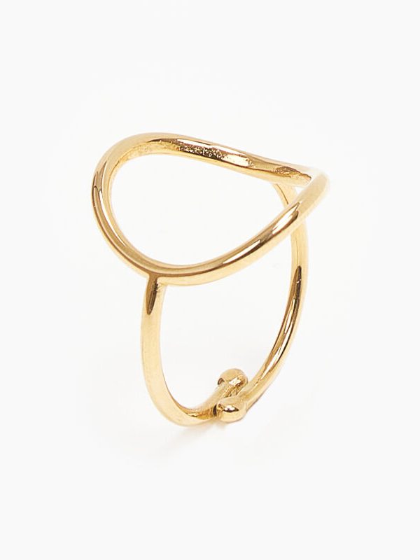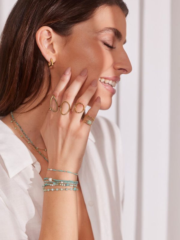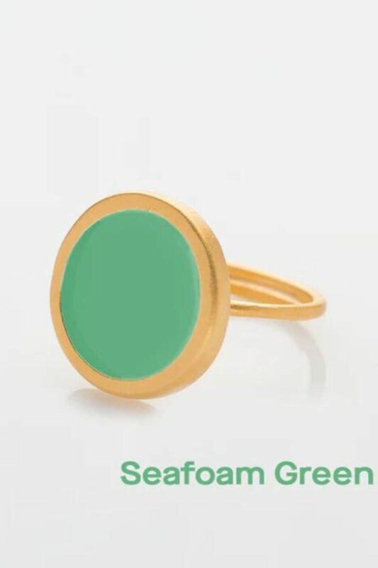 This piece of jewelry is made of brass featuring a 24K gold plating. The inside surface is coated with coloring resin.