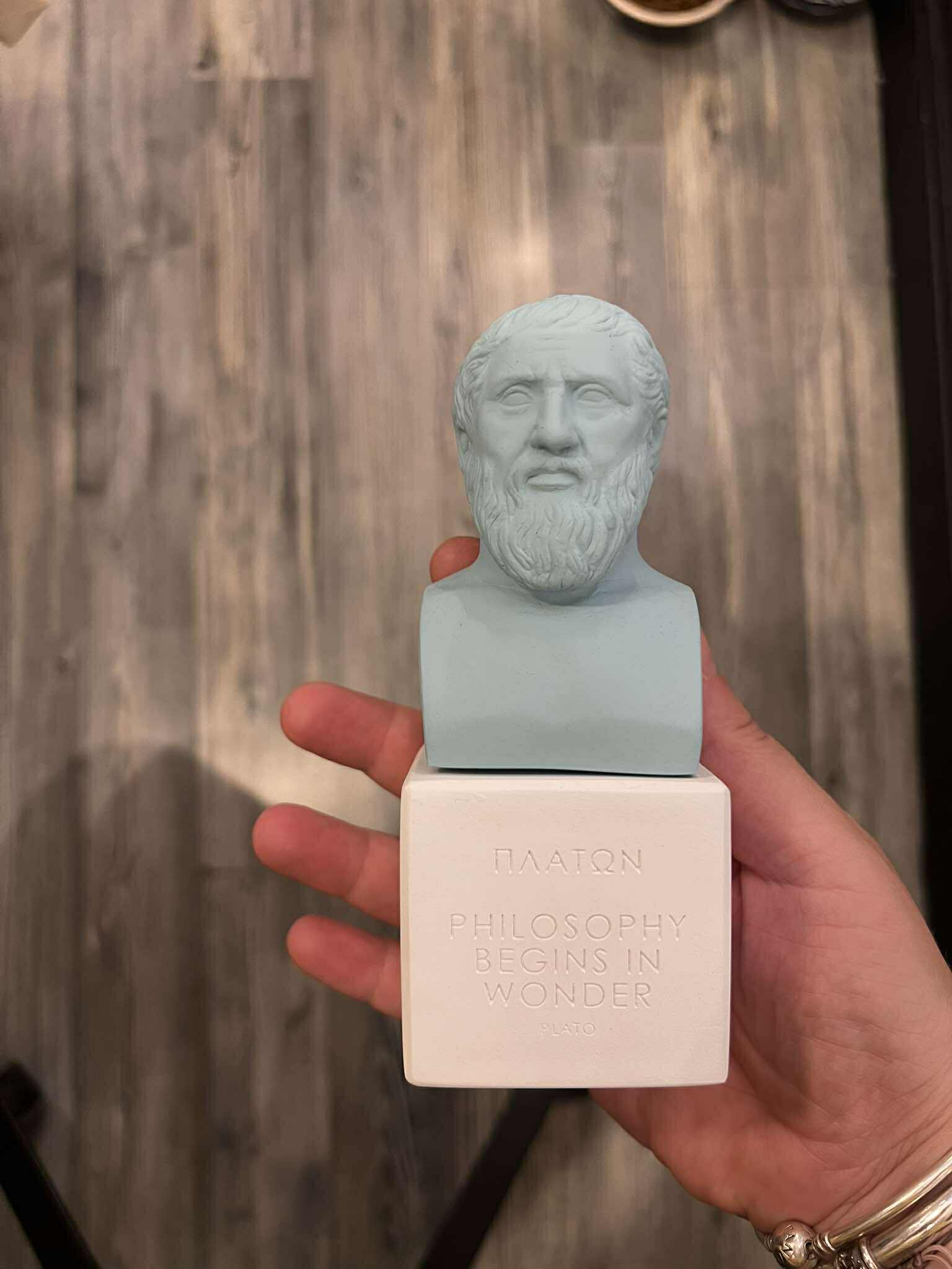 Minimalist and deeply symbolic, this handmade statue captures the essence of Plato’s legacy, reminding us that “Philosophy begins in wonder.”