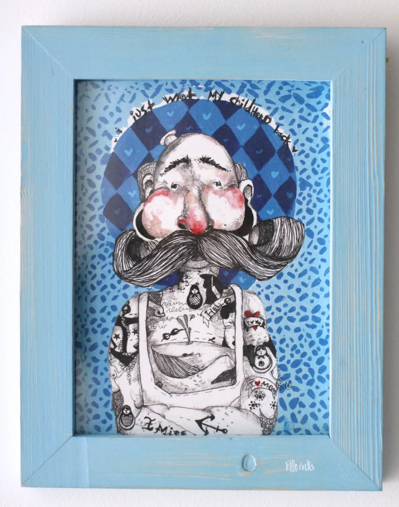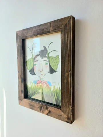 The illustration comes with wooden upcycled frame and plexi glass