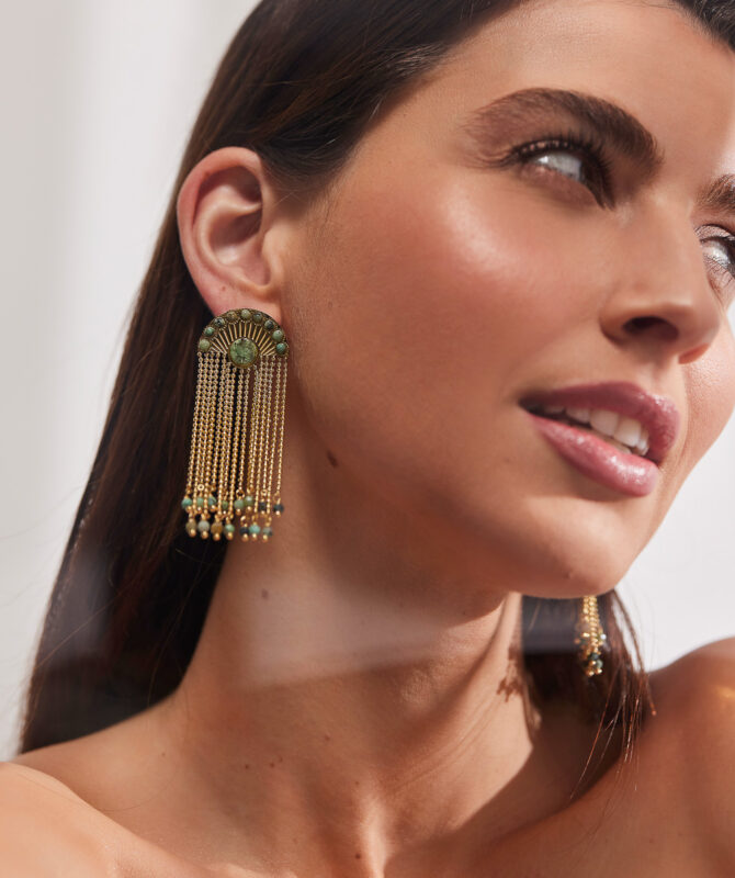 It is made of gold-plated steel and semi-precious stones – African turquoise.